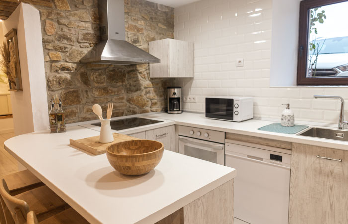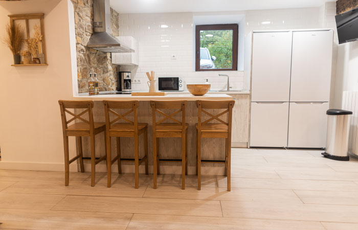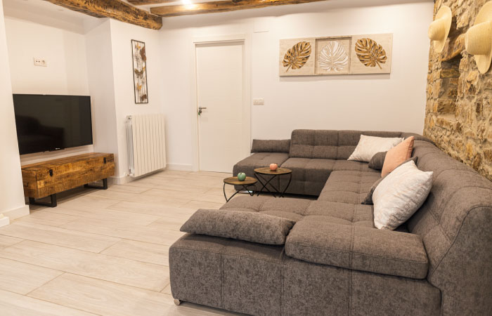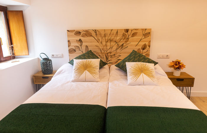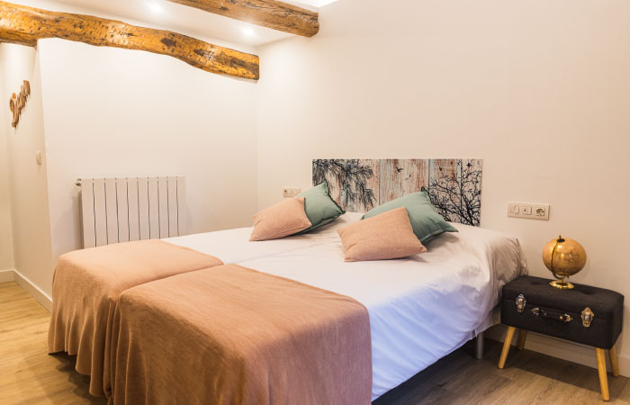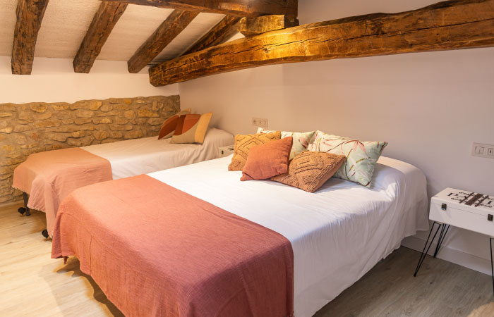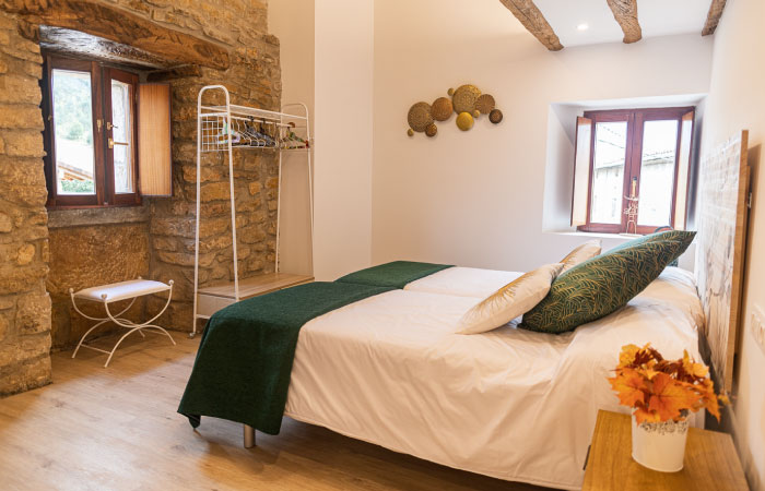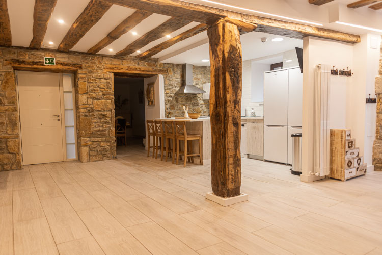 *La casa cuenta con tres plantas. El máximo de huéspedes será de 18 personas.*La planta baja adaptada para personas con movilidad reducida, cuenta con una habitación triple con cama de matrimonio de 1,50X2m y cama de 90x2m, baño completo, salón, cocina completa con 2 neveras, txoko y porche. *La primera planta dispone de 4 habitaciones…